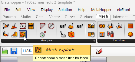 Meshedit is a set of components which extend Grasshopper's ability to work with meshes.